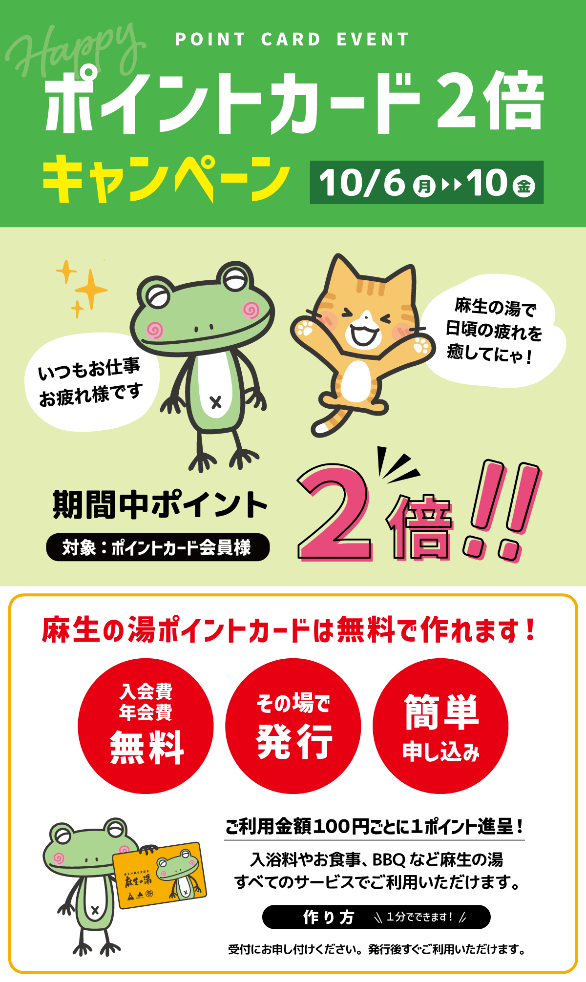 「ふっとばす」は麻生の湯の大駐車場に併設された足湯専門棟で、いつでも無料の足湯を楽しんでいただけます。足湯をご利用の際はフロントにて足湯用のタオルを販売しております。入館されない方でもご自由にお使いいただけますのでお気軽にご利用ください。